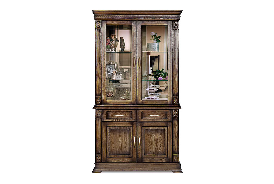 Комбинированный шкаф из коллекции «Верди Люкс» - это стильное решение для интерьера, оформленного в классическом стиле. Стеклянные фасады в сочетании с зеркальными полками и задней стенкой создадут красивую игру света. Благодаря этому, хрустальные бокалы, которые Вы можете поставить на полки, заиграют новыми красками. В выдвижных ящиках и нишах за дверцами Вы сможете спрятать личные вещи и легко поддерживать порядок в комнате. Декоративные элементы в виде резных пилястр и фигурного цоколя придают шкафу торжественности и утонченности, свойственных классике.