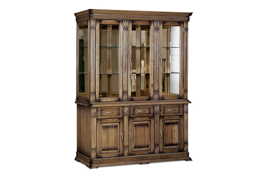 Большой комбинированный шкаф из коллекции «Верди Люкс» - это стильное решение для интерьера, оформленного в классическом стиле. Стеклянные фасады в сочетании с зеркальными полками и задней стенкой создадут красивую игру света. Благодаря этому, хрустальные бокалы, которые Вы можете поставить на полки, заиграют новыми красками. В выдвижных ящиках и нишах за дверцами Вы сможете спрятать личные вещи и легко поддерживать порядок в комнате. Декоративные элементы в виде резных пилястр и фигурного цоколя придают шкафу торжественности и утонченности, свойственных классике.