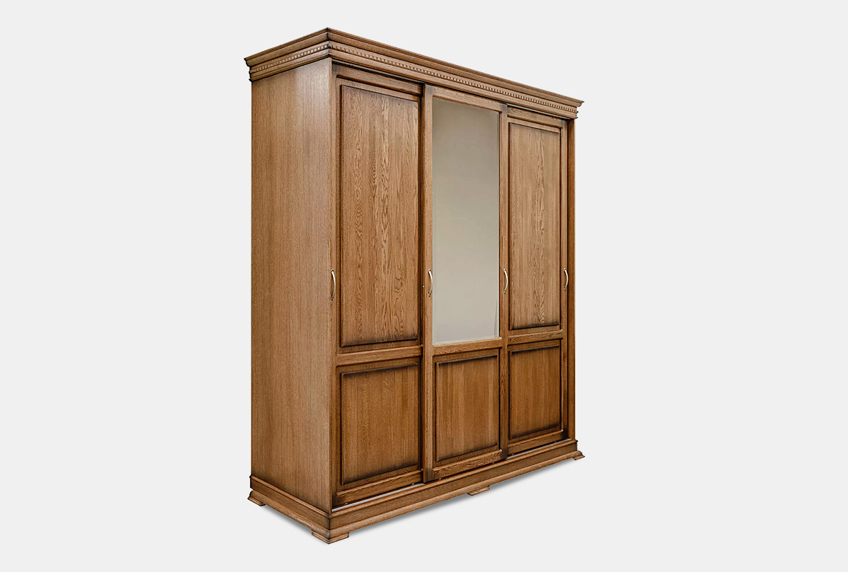 Трехдверный шкаф-купе «Верди Люкс» - это идеальный баланс красоты и эргономичности. Утонченность классики представлена в виде фигурного цоколя, резных пилястр и благородных цветов крашения, которые подчеркивают природную красоту дерева.