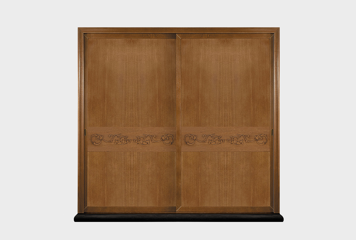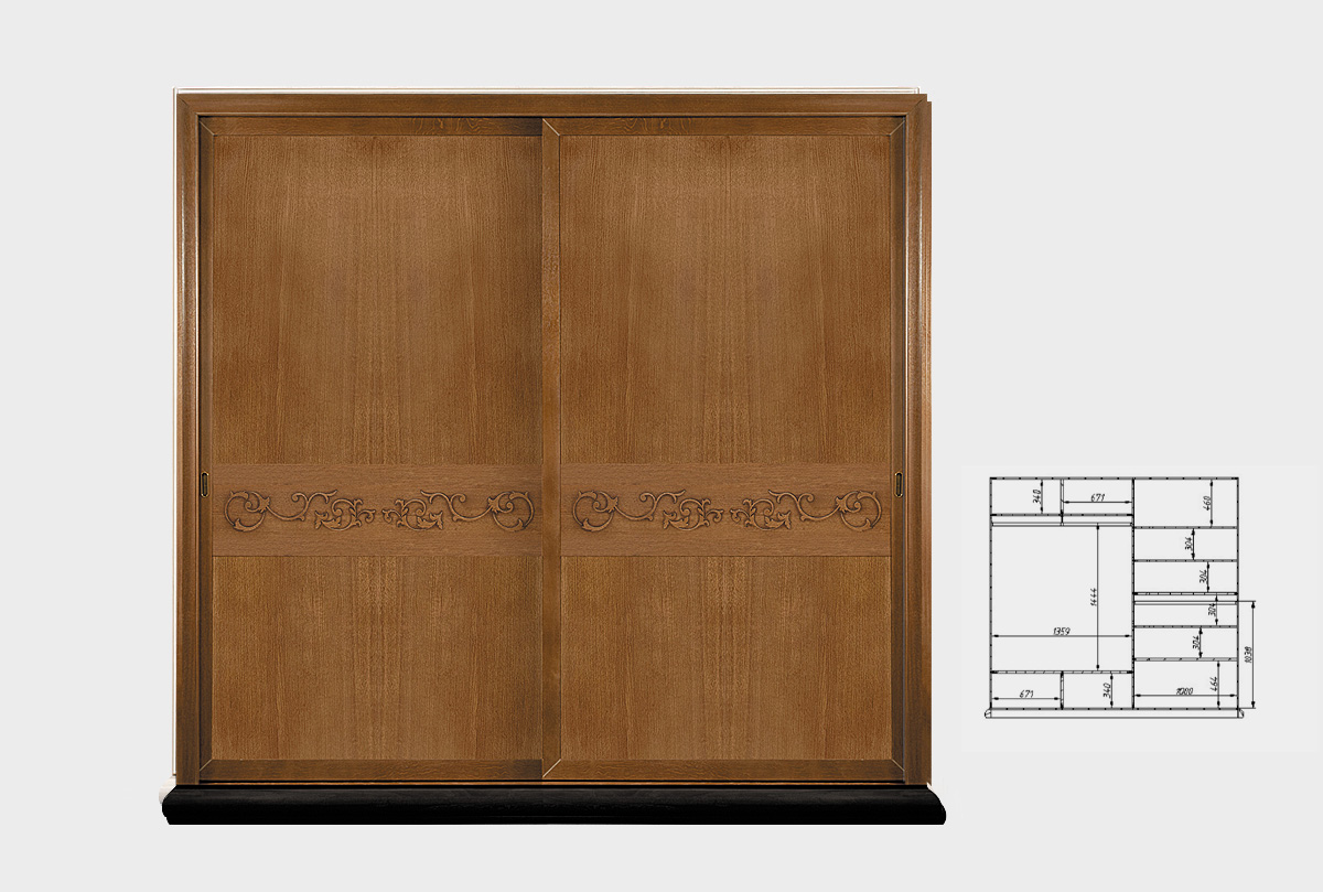 ✅ Изюминку дизайну шкафа придает резной орнамент на фасаде раздвижных дверей.