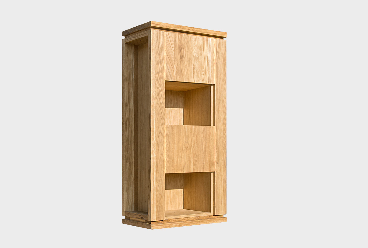 Левый вертикальный навесной шкаф «Берген» (Bergen) в цвете «бейц масло». Изделие выполнено из массива и натурального шпона дуба.