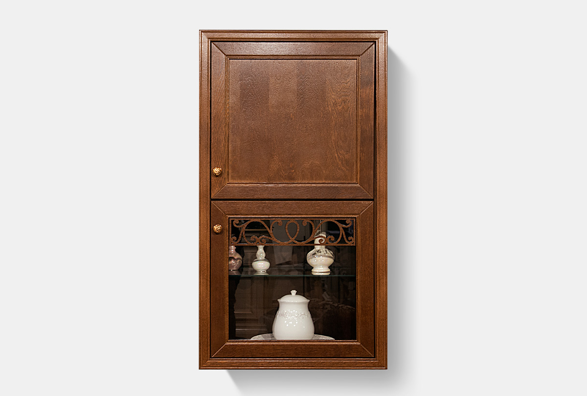 Универсальная и удобная вещь – двухсекционный правый навесной шкаф из коллекции «Тэфи». Он не занимает много места, удобен и комфортен в эксплуатации. Деревянная накладная резьба на застекленной двери придает изделию изюминку, при этом не перегружая образ. Традиционные формы и благородные оттенки придутся по душе всем тем, кто предпочитает современной вычурности выдержанную классику. Подберите свой оттенок и наслаждайтесь гармоничным интерьером вашей обновленной гостиной или столовой.
