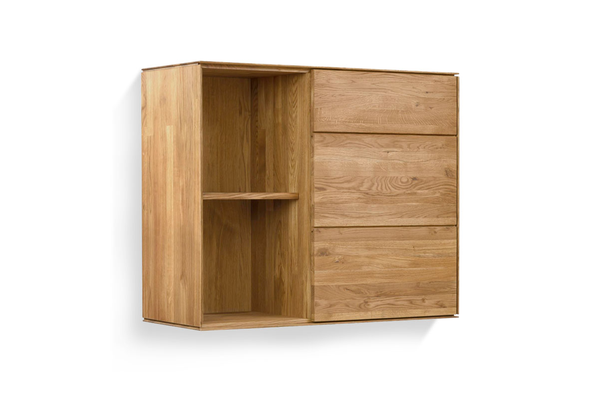 Двухсекционный навесной шкаф с нишей «Гринвуд» 2 из дуба в цвете бейц-масло для гостиной в стиле Лофт.