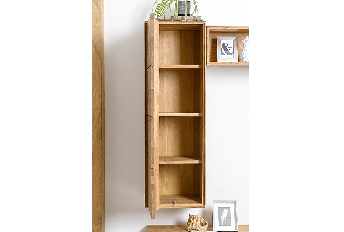 Левый однодверный навесной шкаф «Гринвуд» из дуба в цвете бейц-масло для гостиной в стиле Лофт.