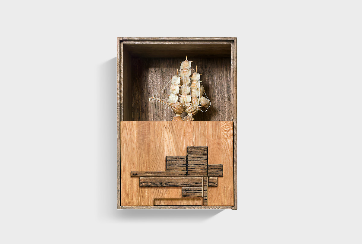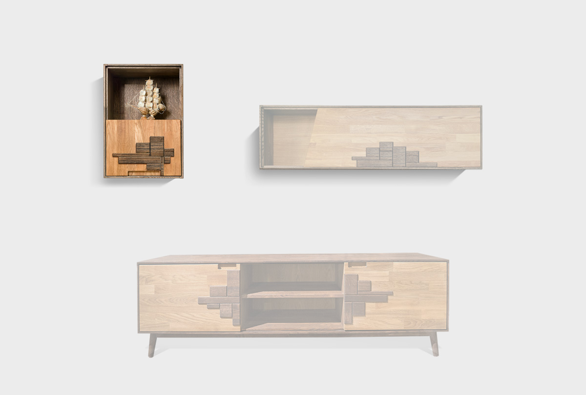 Навесной левый шкаф «Ирвинг Дизайн» 60 в цвете «графит, бейц-масло», с нишей, 1 дверь, материал - массив дуба.