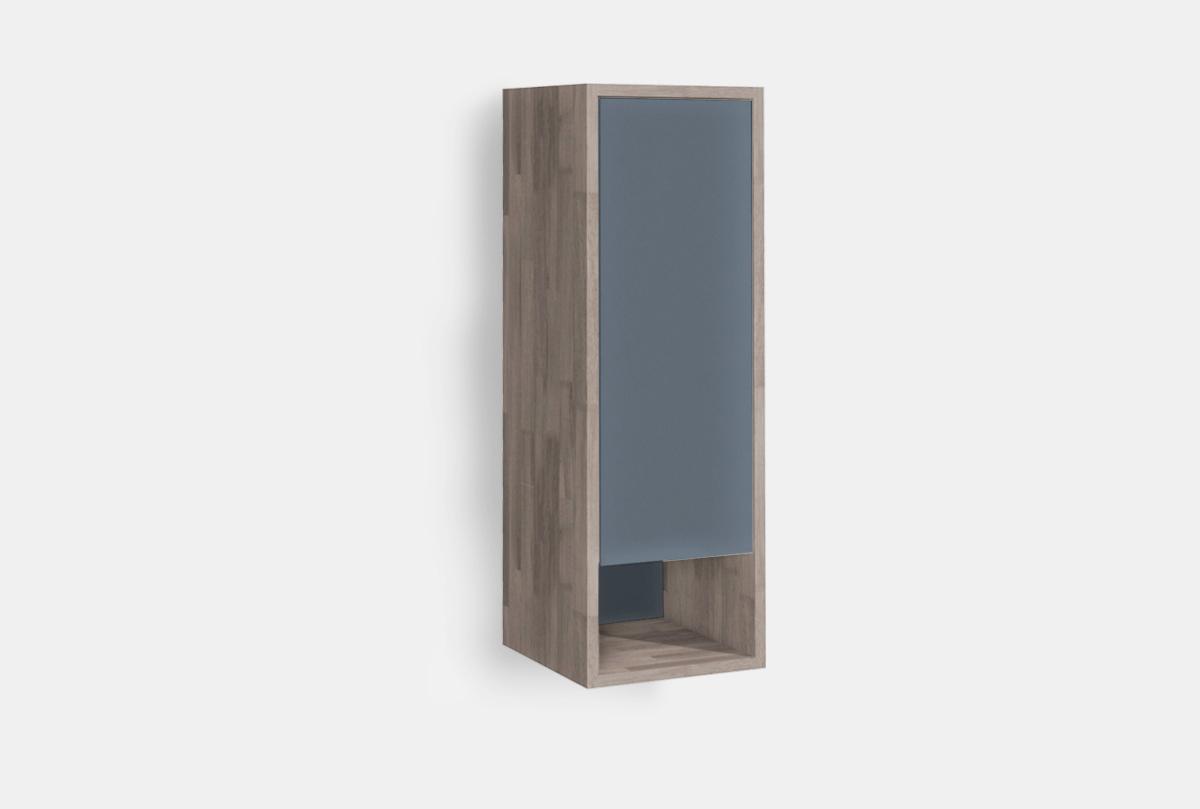 Шкаф навесной Уоллстрит (правый), с нишей, в стиле Лофт для Вашей гостиной. Шкаф изготовлен из комбинации материалов - массива дуба и эмали. Из массива дуба изготовлен корпус и фасады в цвете «бейц-масло», «белёный дуб», «серый дуб», «графит»..