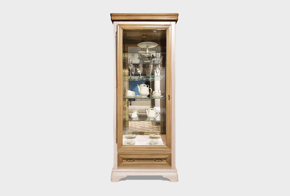 Левый однодверный шкаф с витриной «Оливия» в цвете «пудра» порадует любителей прямых и лаконичных форм. Высокий многослойный карниз, фигурные цоколи, червоточины и тёмная патина – дань стилю Прованс, под вдохновением которого создавалась коллекция «Оливия». Шкаф оснащен подсветкой, которая эстетично отражается в зеркальной задней стенке и создает дополнительную игру света. Благодаря обилию стеклянных элементов, шкаф обладает легкостью и способен привнести в любой интерьер воздушность и нежность.