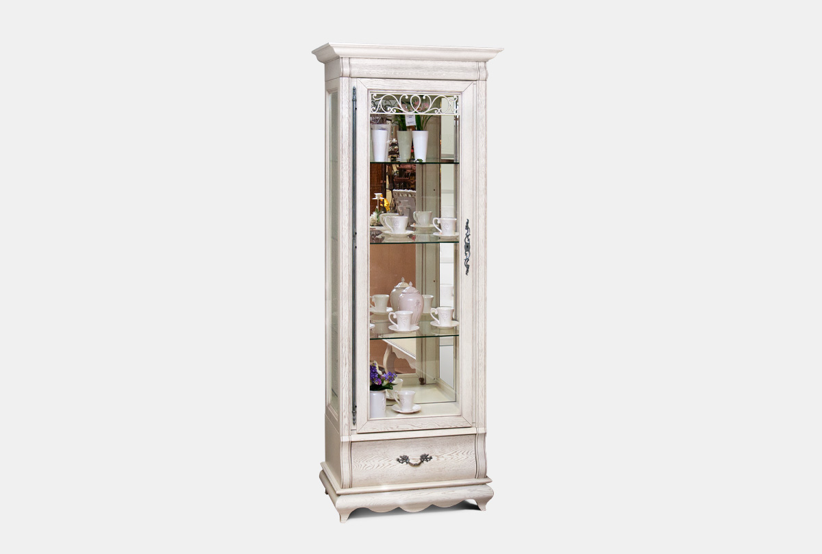 Шкаф с витриной 1-но дв. "Тэфи" высокий (левый), белая эмаль с тёмной патиной, (.Г000075664)