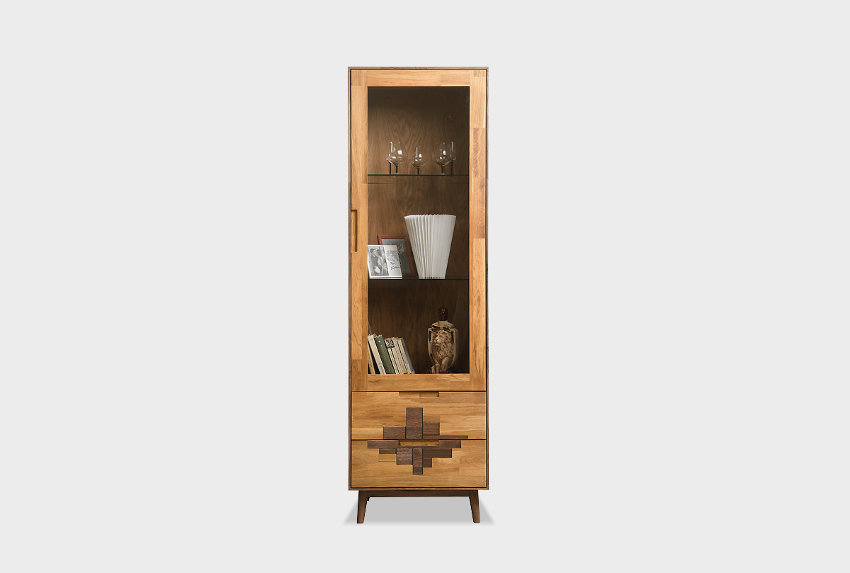 Шкаф с витриной 1-но дверный "Ирвинг Дизайн" (правый), графит + бейц-масло, 2 ящика, (.Г000060540)