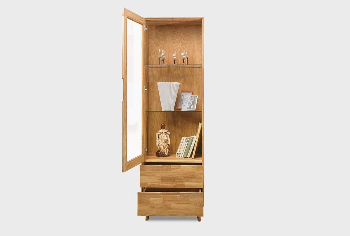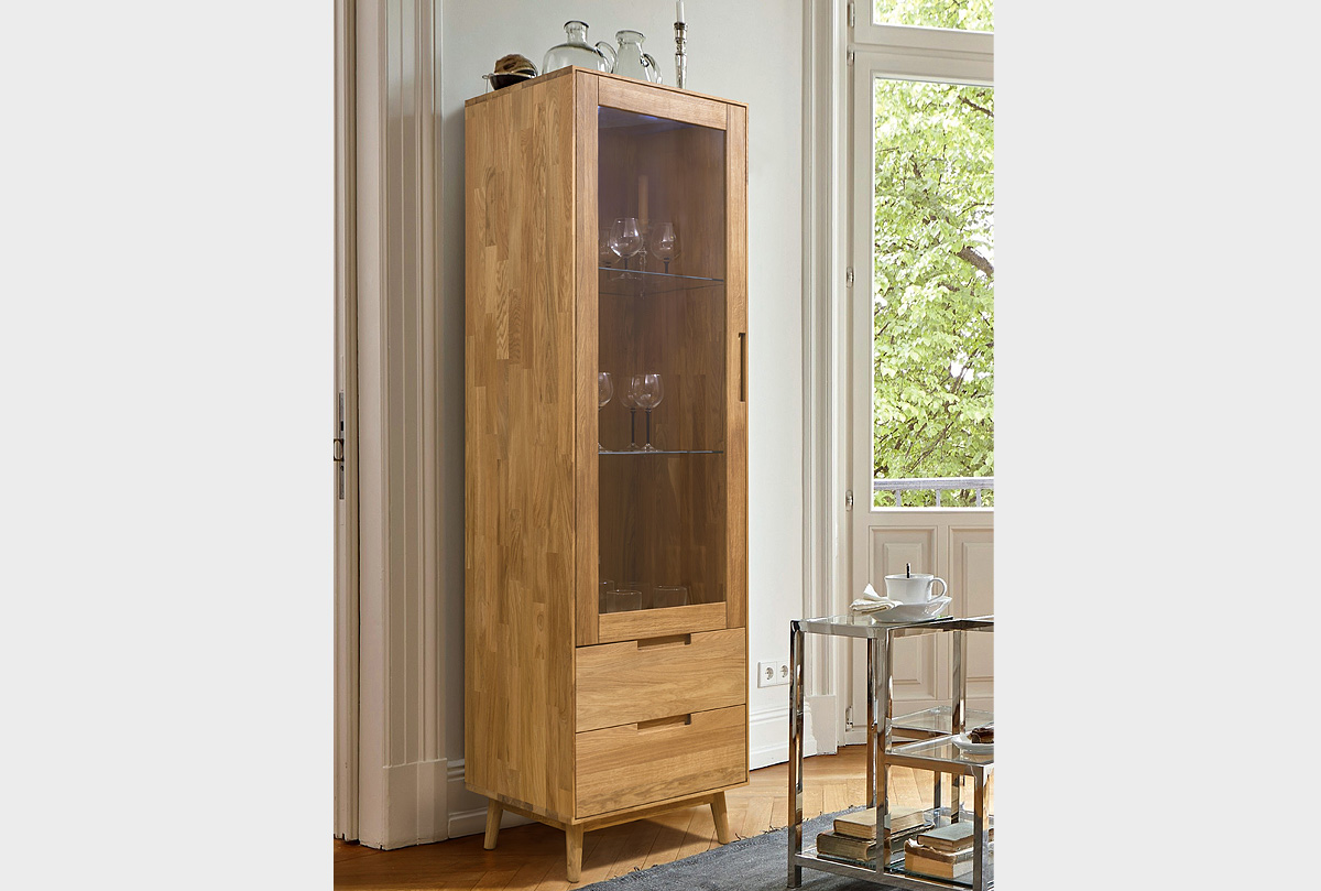 Шкаф с витриной «Ирвинг» благодаря универсальному дизайну и натуральному дереву легко встраивается как в скандинавский, так и в современный, эклектичный интерьер. Подчеркните его тёплый характер зелёными растениями, книгами или предметами ручной работы.