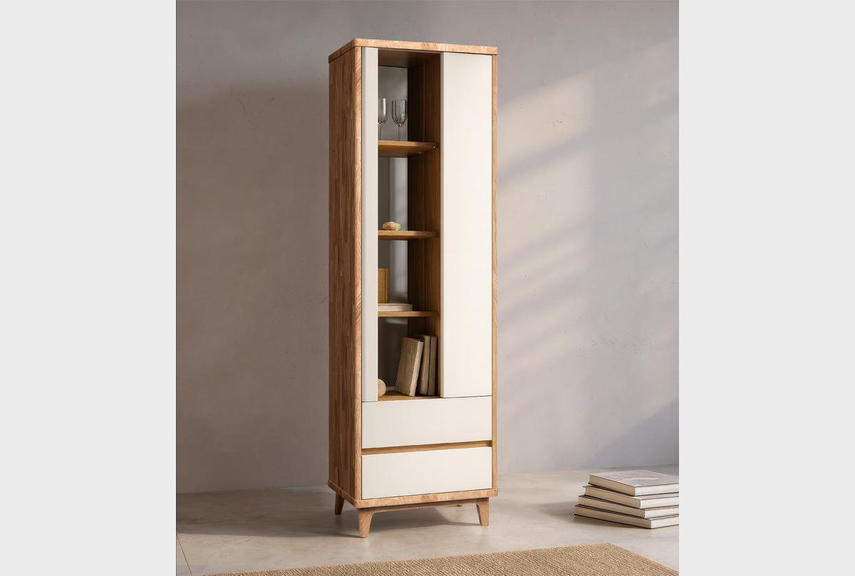 ✅ Полки из массива дуба визуально подчеркивают натуральность и надежность изделия. Благодаря деревянным полкам в витрине можно хранить книги, ставить вазы и не беспокоиться об излишней нагрузке полок.