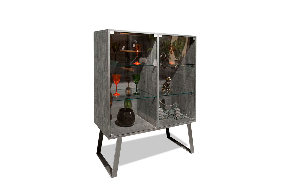 Шкаф с витриной 2-х дв. "Dillinger" (низкий), пепельный дуб, металл сатин, (.Г000045350)