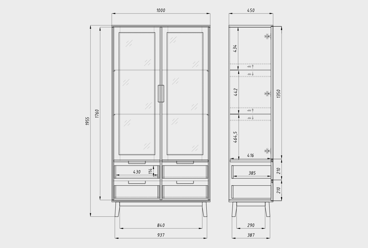 ✅ Размеры: ширина 1000 мм, высота 1955 мм, глубина 450 мм.