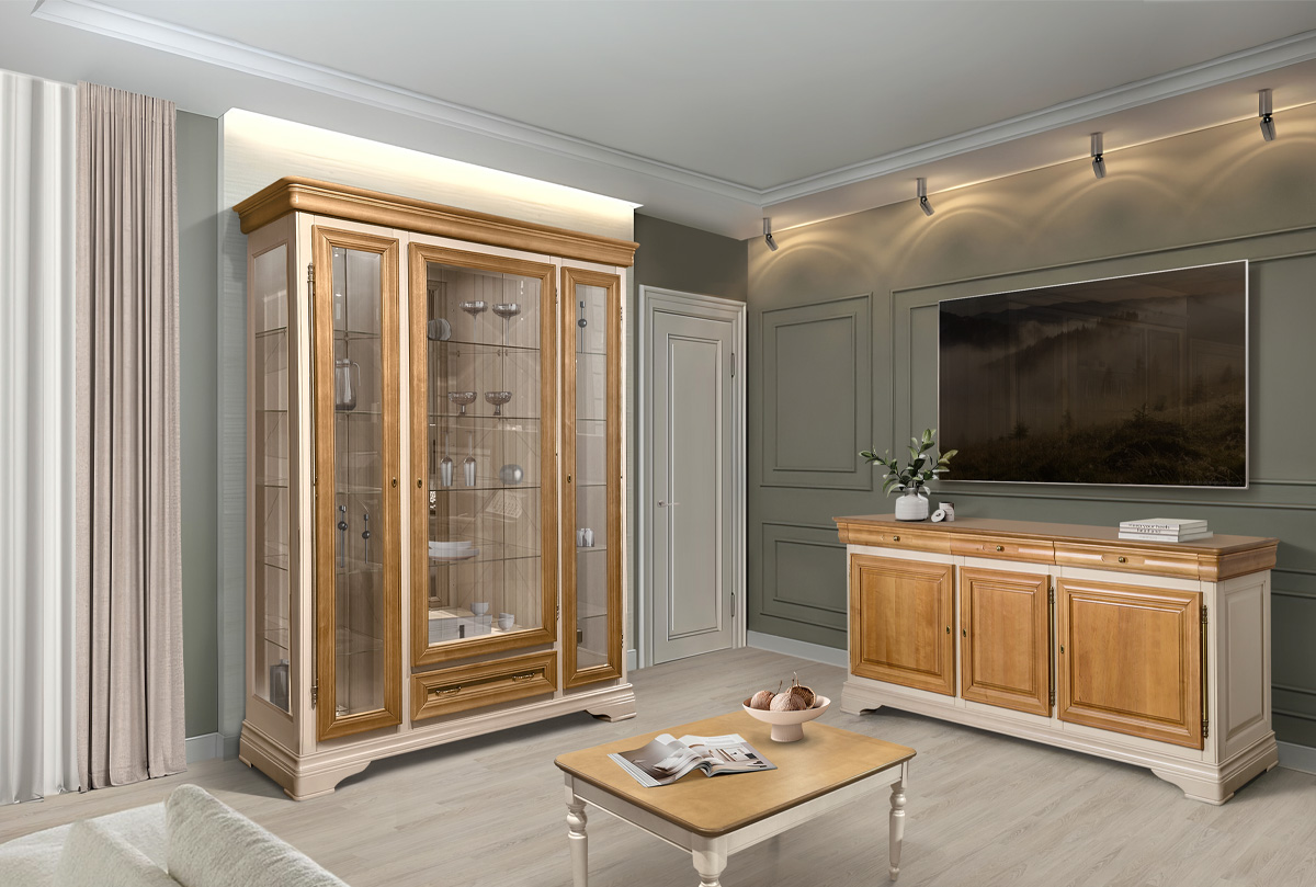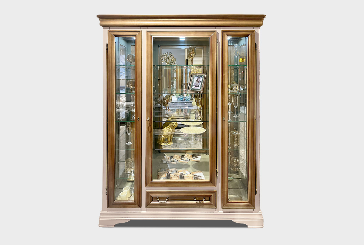 Особенности трехдверного шкафа с витриной «Оливия»: