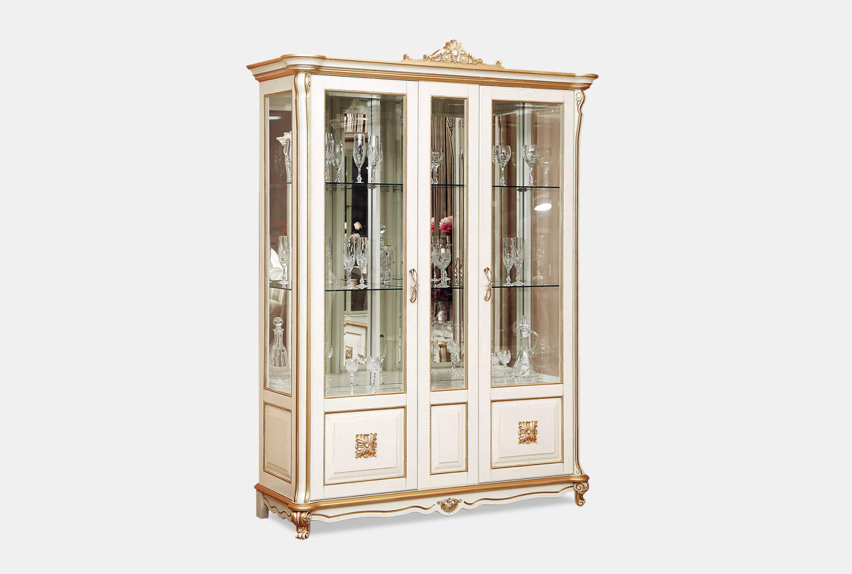 Особенности трёхдверного шкафа с витриной «Алези 5 Люкс» (Alezi):