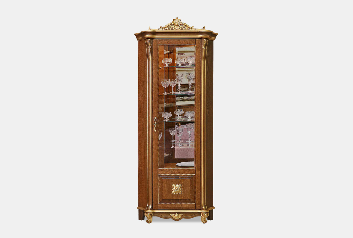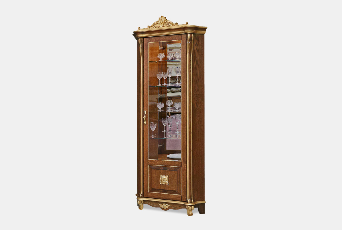 Шкаф с витриной угловой "Алези 10 Люкс" (правый), античная бронза с золочением, (.Г000056083)