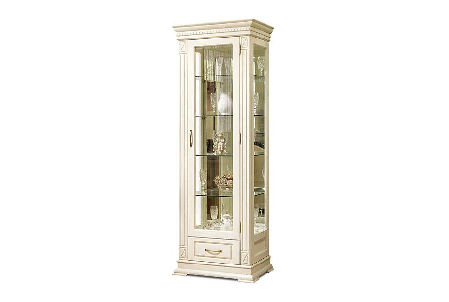 Идеальным дополнением к гостиной, меблированной в классическом стиле, станет однодверный шкаф с витриной из коллекции «Верди Люкс». Несмотря на свою массивность и основательность, этот предмет мебели не займет много места в Вашей комнате, а только лишь, наоборот, станет ее украшением и изюминкой. Благородные цвета крашения вкупе с зеркальными полками и задней зеркальной поверхностью шкафа подчеркивают изысканность, свойственную классическому стилю, а декоративная резьба на пилястрах и фигурный цоколь придают шкафу утонченности и «воздушности». Вместительный выдвижной ящик делает его не только красивым, но и функциональным.