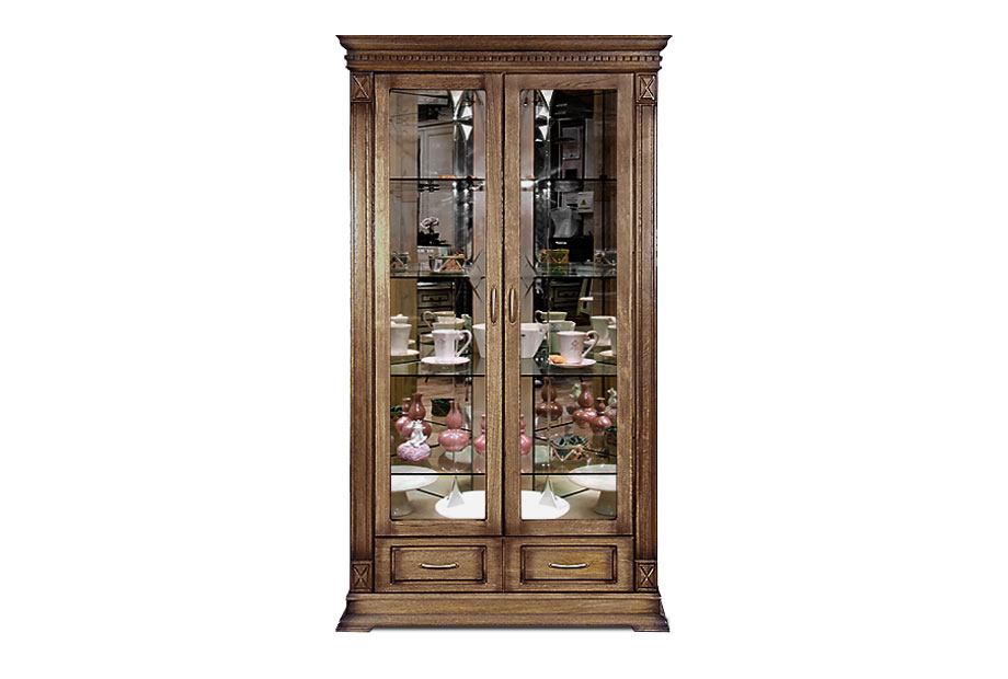 Идеальным дополнением к гостиной, меблированной в классическом стиле, станет двухдверный шкаф с витриной из коллекции «Верди Люкс». Несмотря на свою массивность и основательность, этот предмет мебели не займет много места в Вашей комнате, а только лишь, наоборот, станет ее украшением и изюминкой. Благородные цвета крашения вкупе с зеркальными полками и задней зеркальной поверхностью шкафа подчеркивают изысканность, свойственную классическому стилю, а декоративная резьба на пилястрах и фигурный цоколь придают шкафу утонченности и «воздушности». Вместительный выдвижной ящик делает его не только красивым, но и функциональным.