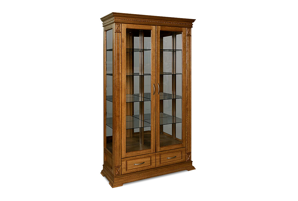 Идеальным дополнением к гостиной, меблированной в классическом стиле, станет двухдверный шкаф с витриной из коллекции «Верди Люкс». Несмотря на свою массивность и основательность, этот предмет мебели не займет много места в Вашей комнате, а только лишь, наоборот, станет ее украшением и изюминкой. Благородные цвета крашения вкупе с зеркальными полками и задней зеркальной поверхностью шкафа подчеркивают изысканность, свойственную классическому стилю, а декоративная резьба на пилястрах и фигурный цоколь придают шкафу утонченности и «воздушности». Вместительный выдвижной ящик делает его не только красивым, но и функциональным.