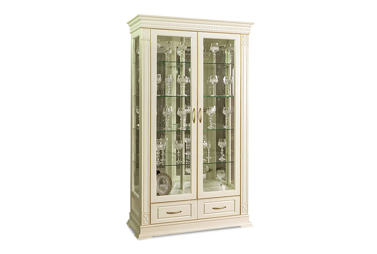 Шкаф с витриной "Верди Люкс 2з", слоновая кость с золочением, (.Г000067990)