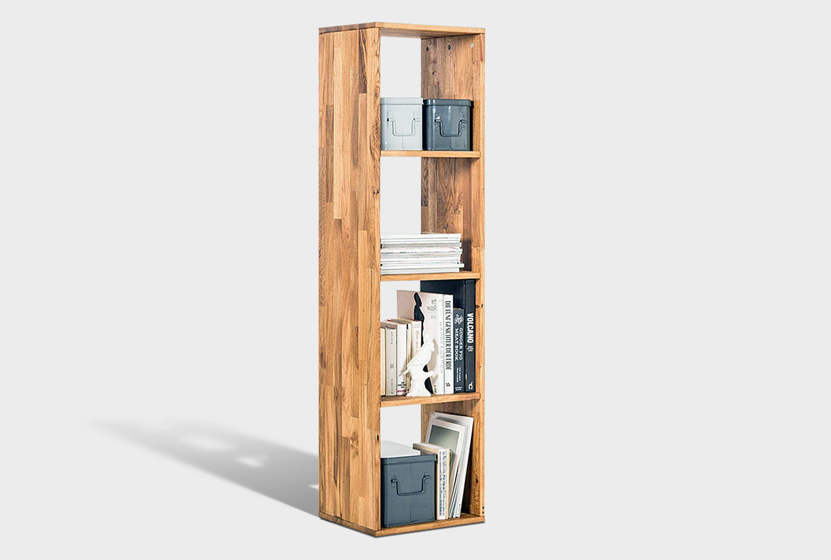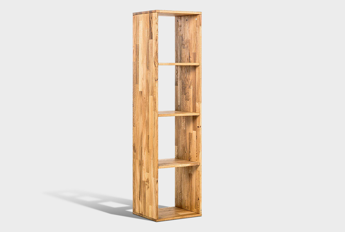 Узкий стеллаж «Арт» 4 в цвете «бейц-масло» из массива дуба.