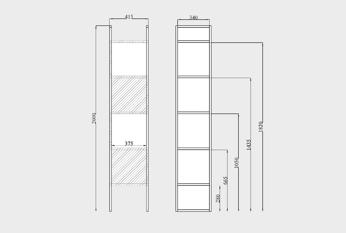 Стеллаж "Арт" 420, белёный дуб + черный металл, узкий, (.Г000046906)