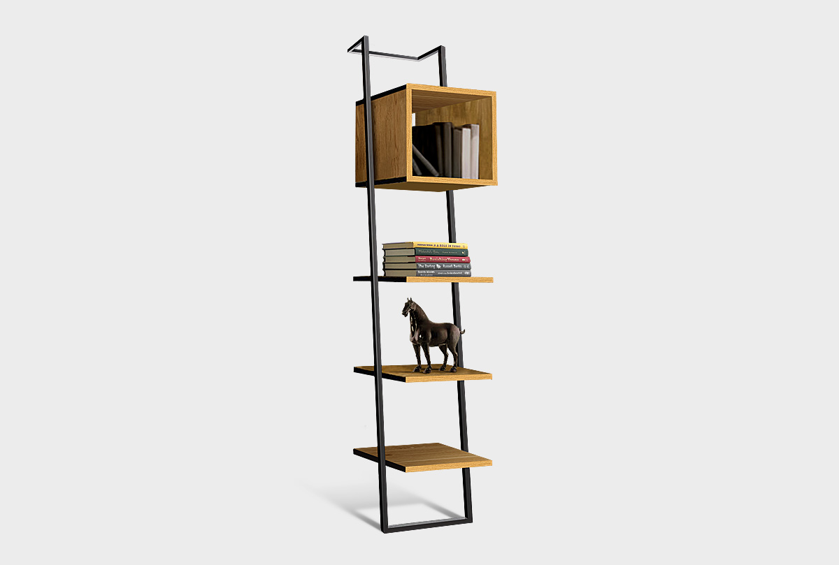 Стеллаж "Арт" 440, бейц-масло + черный металл, пристенный наклонный, (.Г000043046)