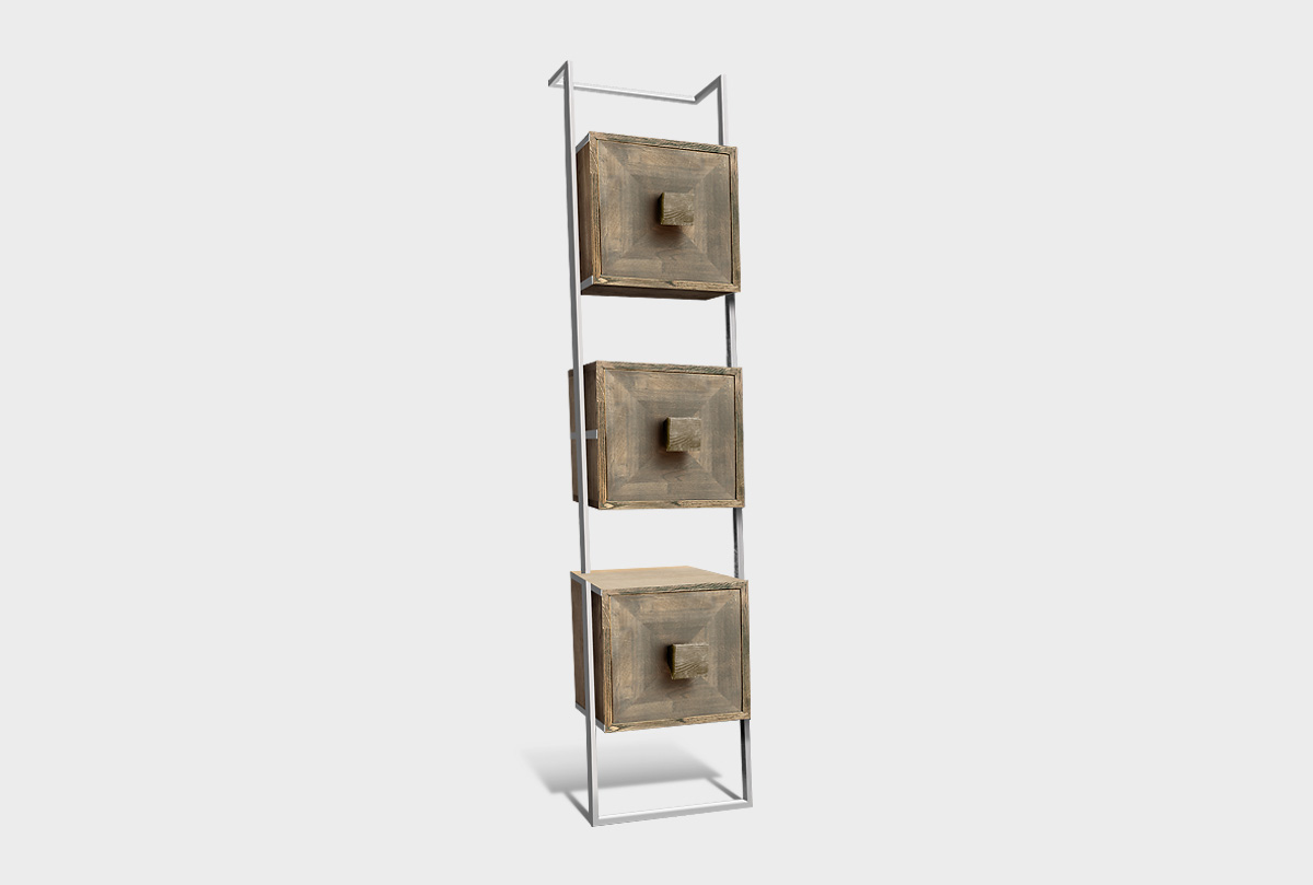 Стеллаж "Арт" 441, серый дуб + белый металл, пристенный наклонный, (.Г000049884)