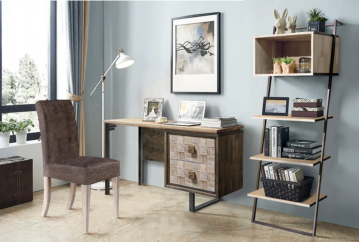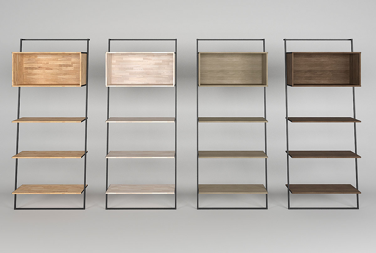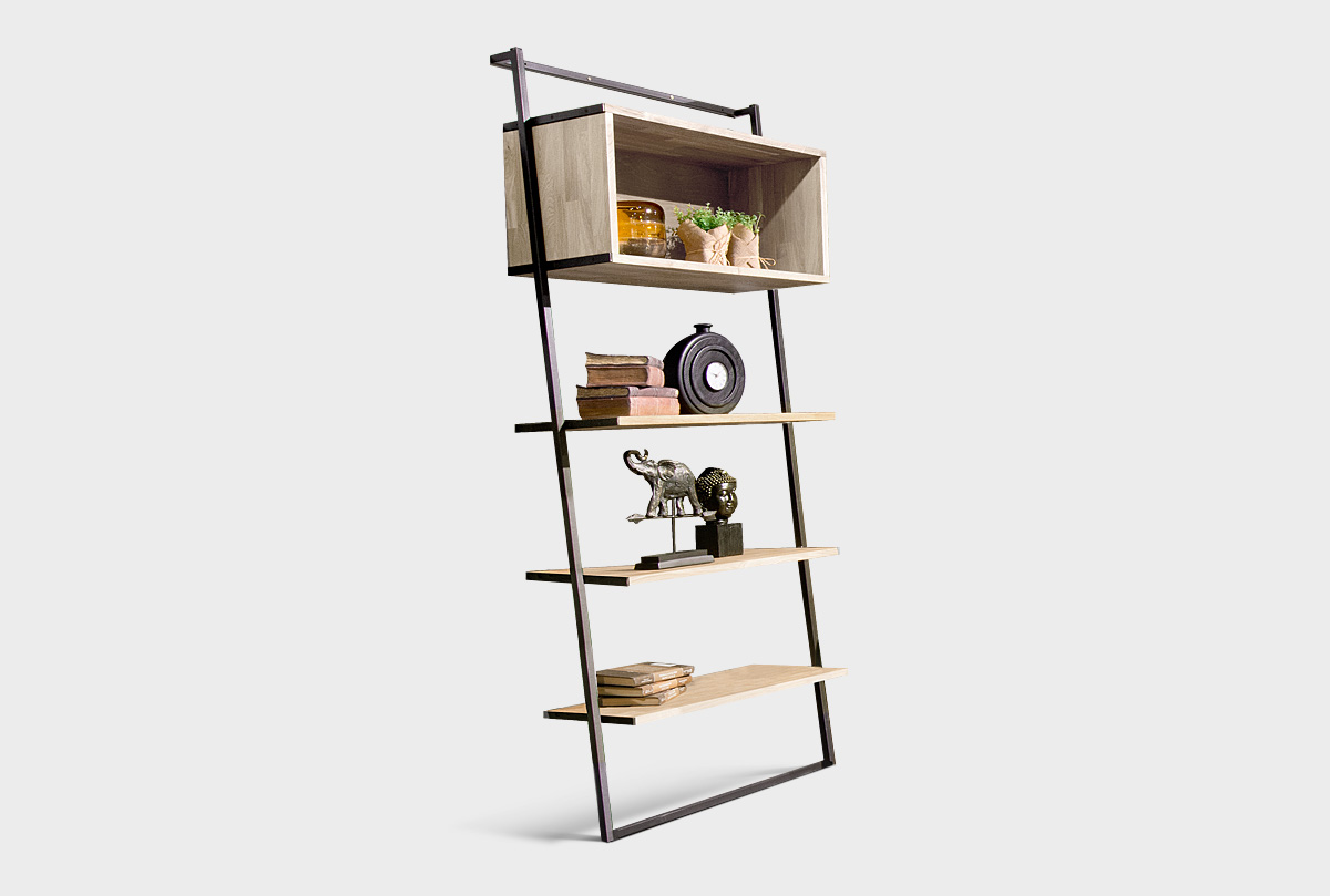 Стеллаж "Арт" 445, белёный дуб + черный металл, пристенный наклонный, (.Г000046956)
