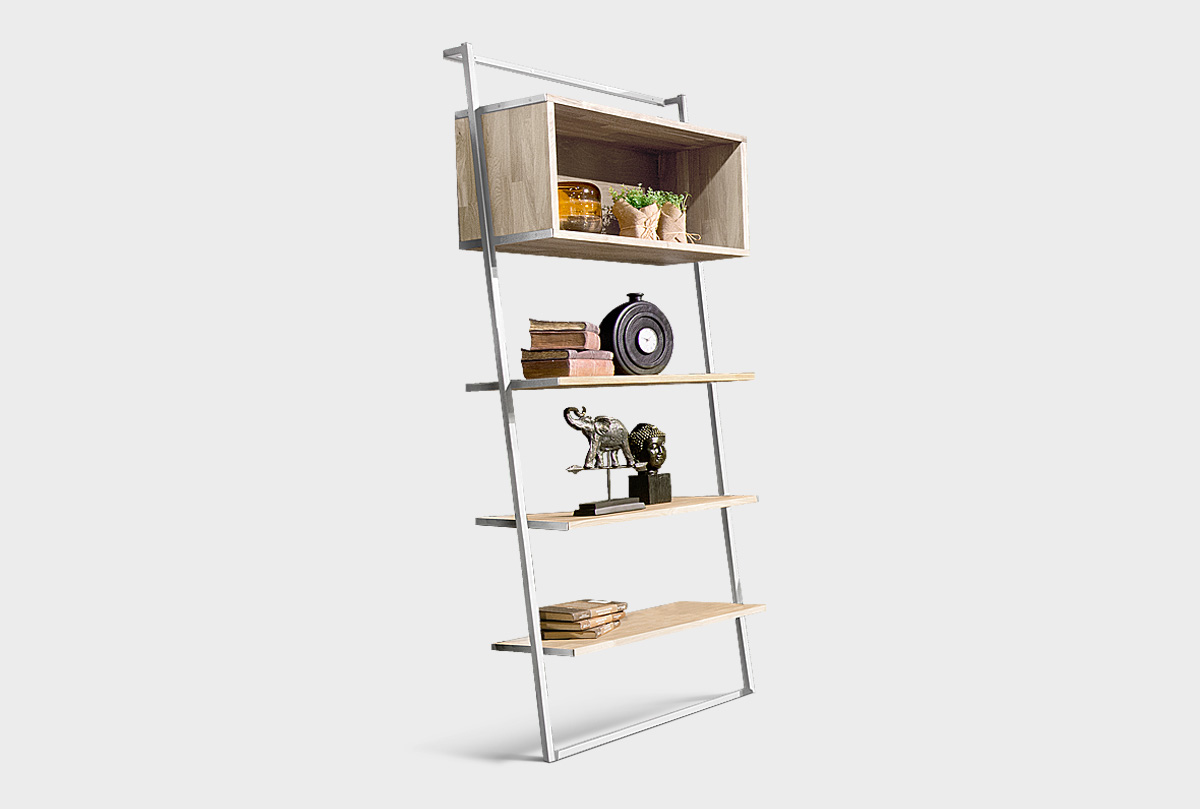 Стеллаж "Арт" 445, белёный дуб + белый металл, пристенный наклонный, (.Г000049890)