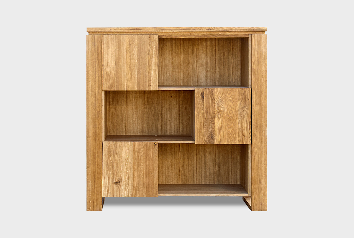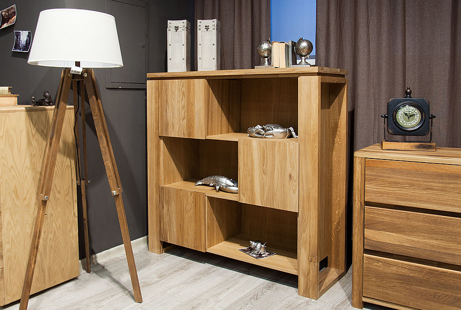 Низкий стеллаж «Берген» В-123 в цвете «бейц-масло» выполнен из натурального дуба, обработанного бейц-маслом. Специально не подобранные деревянные бруски подчеркивают природную красоту дуба и перекликаются с расположенными в шахматном порядке фасадами. Основная черта стиля – отсутствие декора никак не сказалась на функциональности этой коллекции. Стеллаж оснащен открытыми нишами, где Вы можете расставить фотографии близких, памятные статуэтки и другие элементы декора, а так же закрытыми – где можно разместить книги.