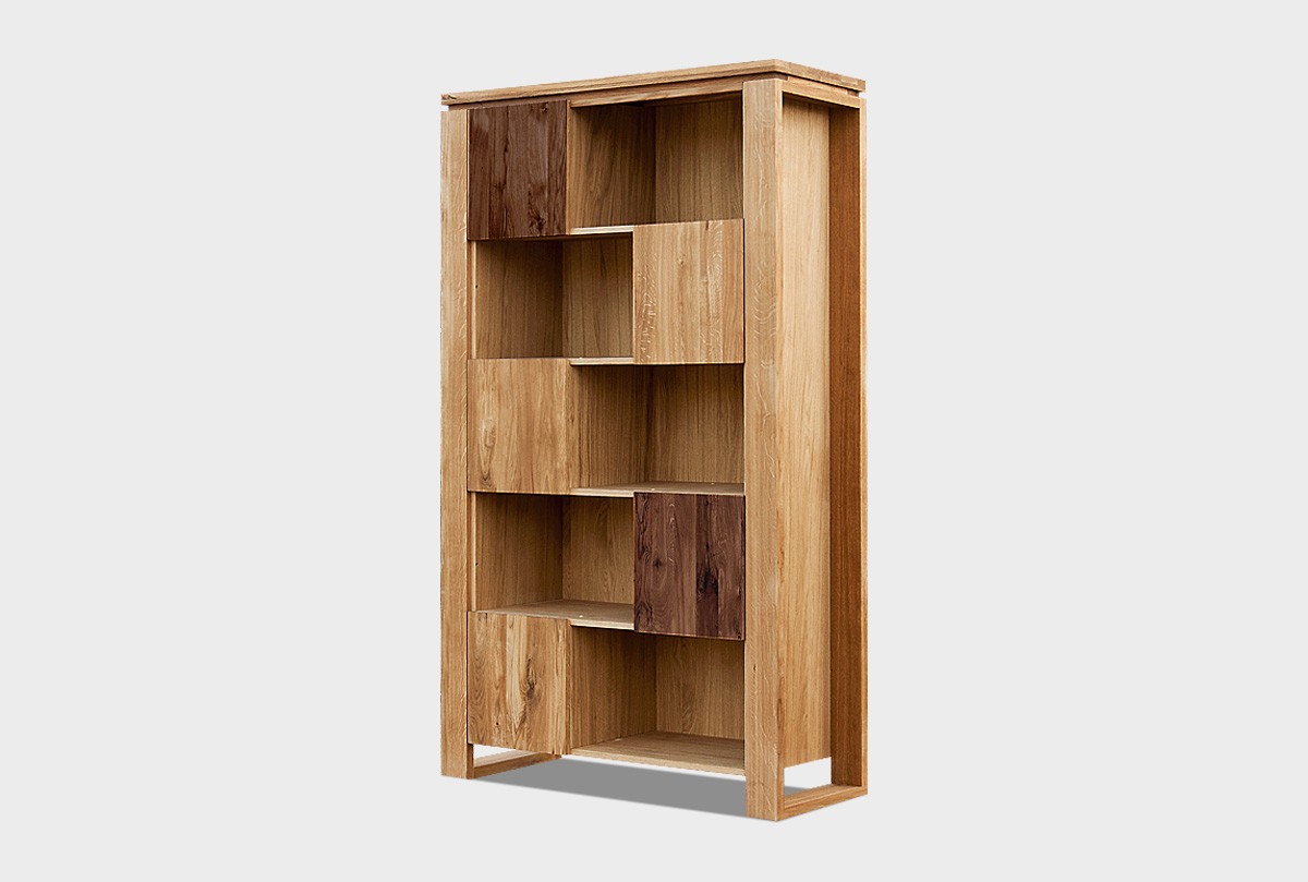 Оригинальный дизайн высокого стеллажа «Берген» В-193 в цвете «бейц-масло, графит» воплотился в шахматной компоновке фасадов. Дверцы выполнены со специальными углублениями, которые обеспечивают удобное открывание. Стеллаж сделан из натурального дуба, обработанного бейц-маслом, благодаря чему сохранена природная структура дерева.