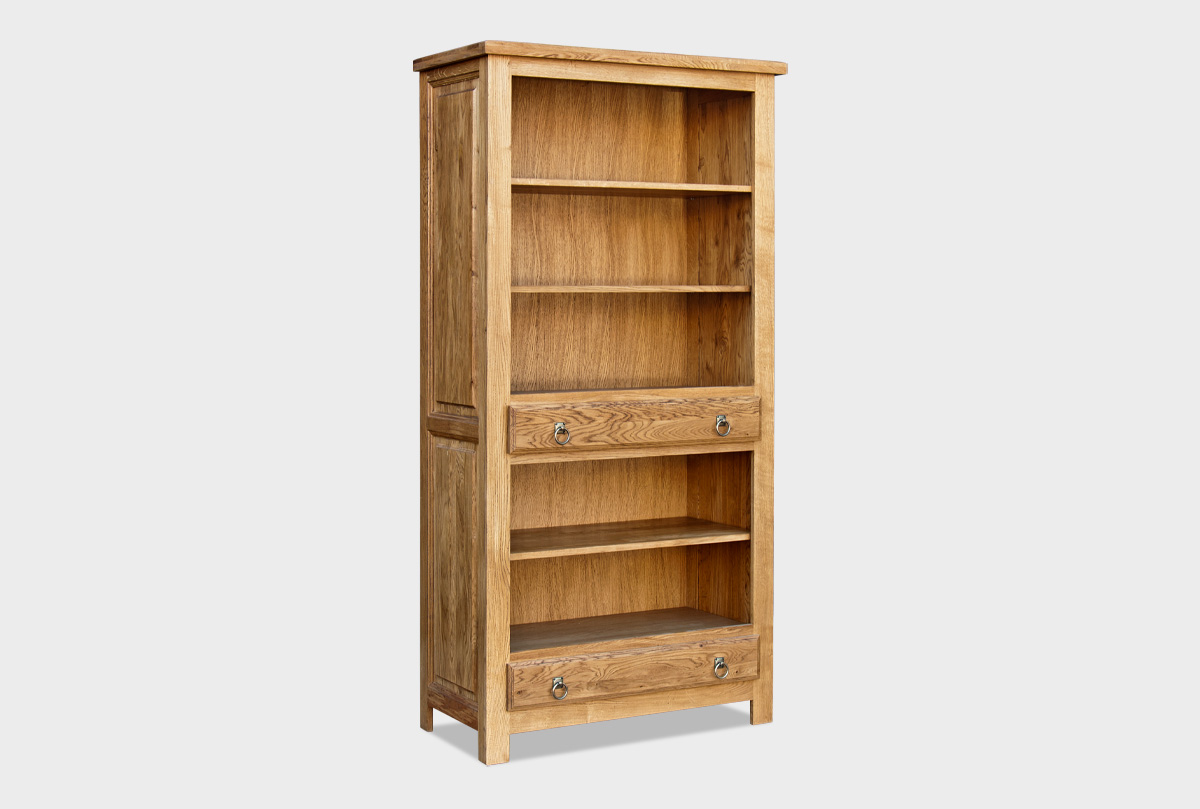Открытые полки позволяют разместить книги, коллекции, посуду или предметы декора — всё, что отражает индивидуальность дома. Прочные полки из массива дуба выдерживают значительные нагрузки, а классическая отделка придаёт конструкции визуальную лёгкость.