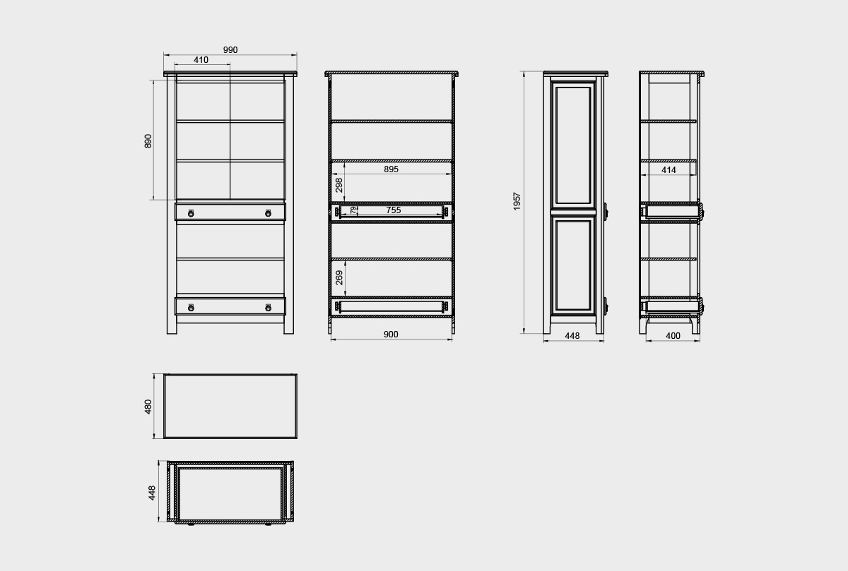 ✅ Размеры: ширина 990 мм, высота 1957 мм, глубина 480 мм.