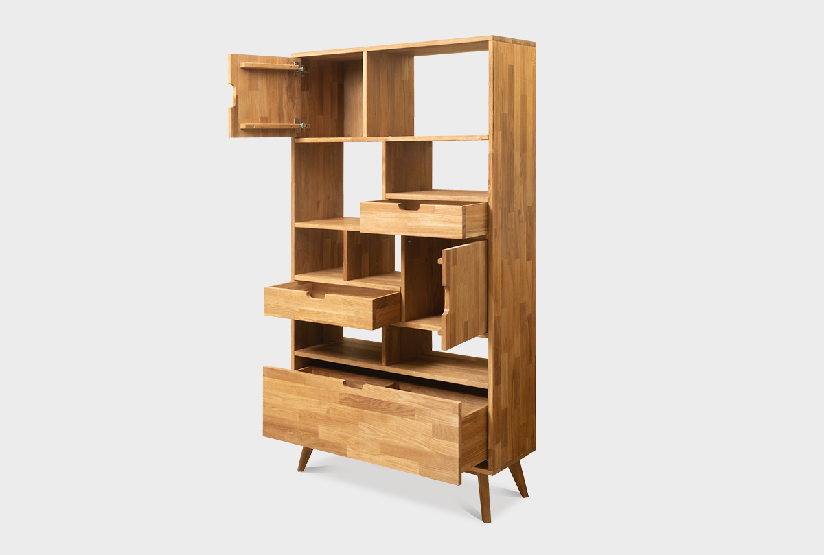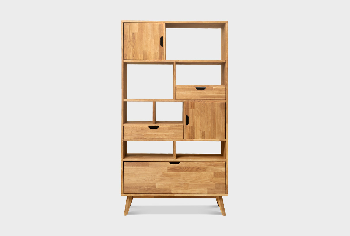 Стеллаж «Ирвинг» 3 — Эта дизайнерская система хранения сочетает открытые и закрытые секции в асимметричной композиции. Она создана не только для поддержания порядка, но и для создания эстетически приятного пространства.