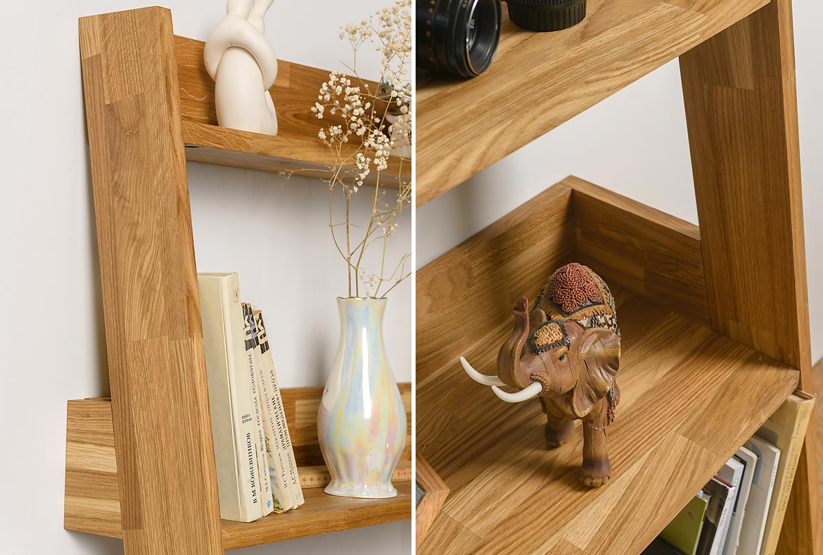 Стеллаж «Ирвинг» — это смелый дизайнерский акцент и практичное решение для хранения в одном изделии. Пять наклонных полок разной глубины расширяются к основанию, создавая визуальную устойчивость и баланс. Этот силуэт выглядит динамичным, но при этом создает ощущение упорядоченности. Каждая полка украшена бортиками, которые надежно защищают книги, декор и аксессуары.