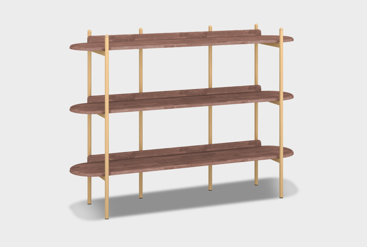 Стеллаж «Меридиан» 3 — это открытая система хранения с тройной симметричной архитектурой. Три полки из 100% массива дуба надёжно закреплены на лёгком, но прочном металлическом каркасе. Его конструкция создаёт ощущение воздушности и одновременно подчёркивает геометрию предмета.
