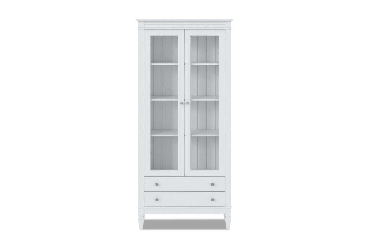 ✅Оснащен двумя ящиками и четырьмя вместительными полками за двумя стеклянными распашными дверями.