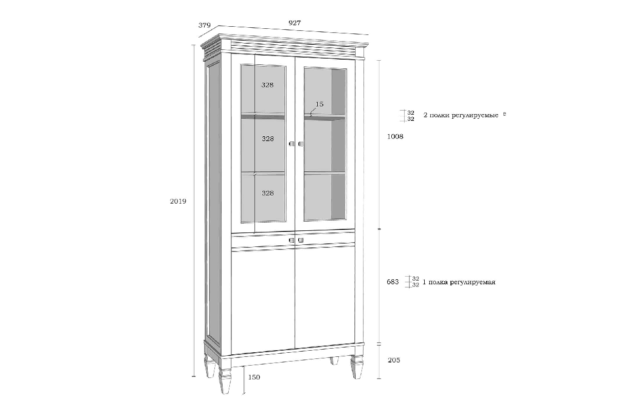 ✅ Оснащен внутри вместительными полками, двумя стеклянными дверями и двумя дверями (филенка).