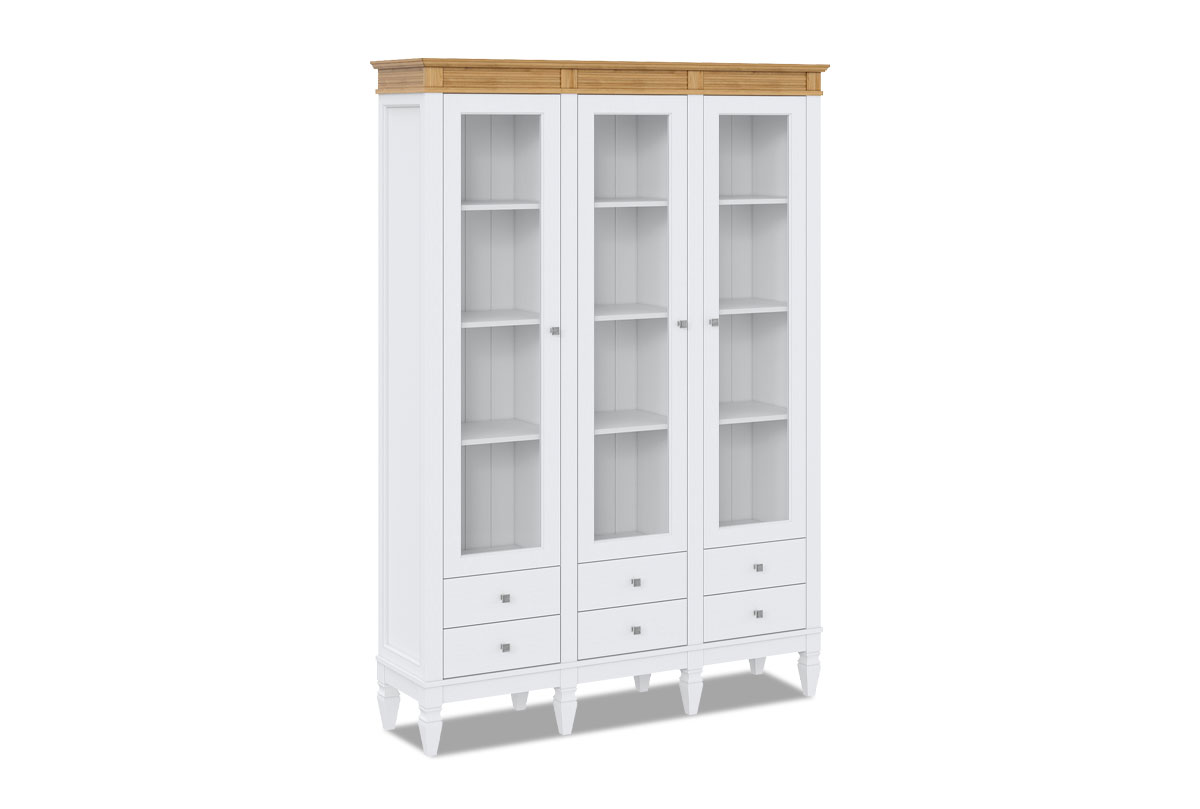 ✅ Оснащен распашными дверями со стеклянными вставками и выдвижными ящиками.