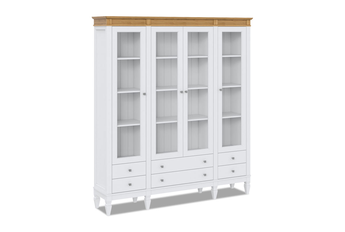 ✅ Три вертикальных секции, в каждой из которых четыре полки за стеклянными дверями, 6 ящиков.