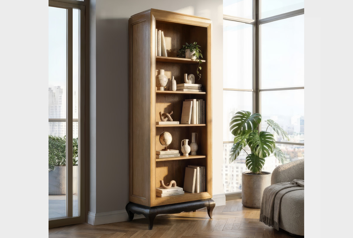 ✅ Стеллаж изготовлен из массива и шпона дуба.