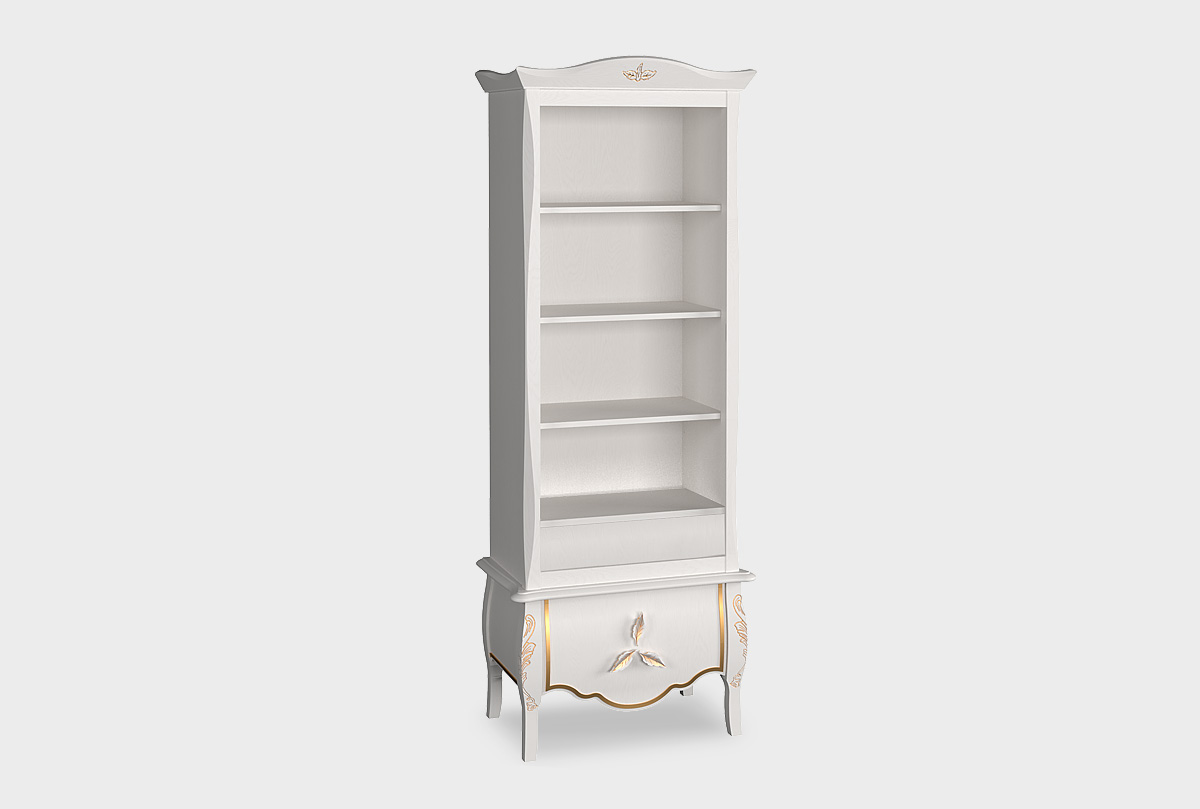 Стеллаж «Трио» в цвете «белая эмаль с золотой патиной», размеры 804х2145х504 мм