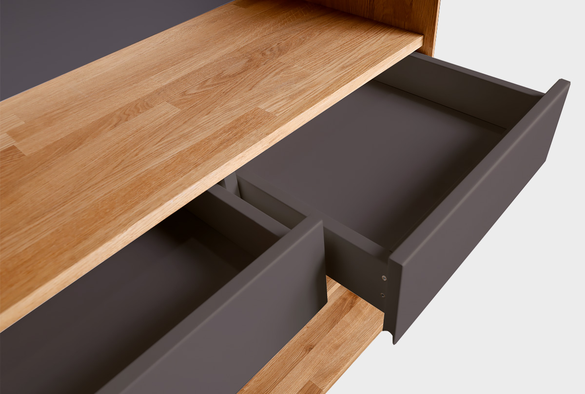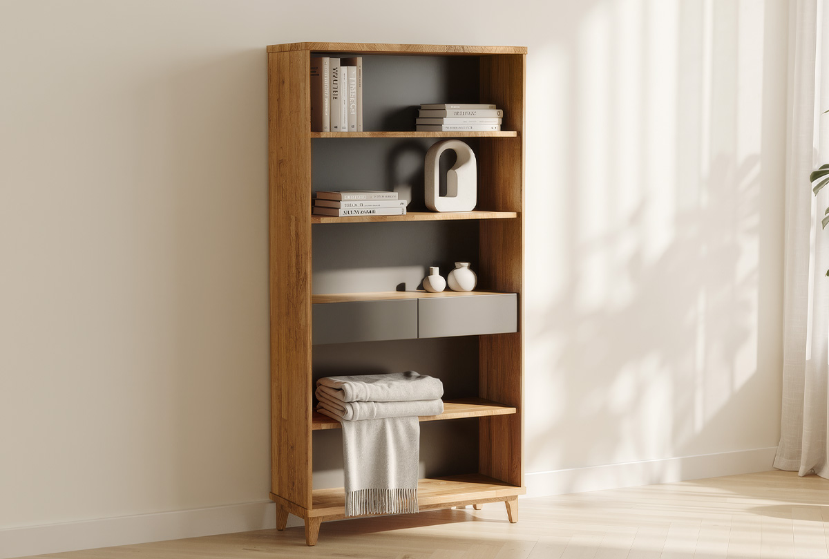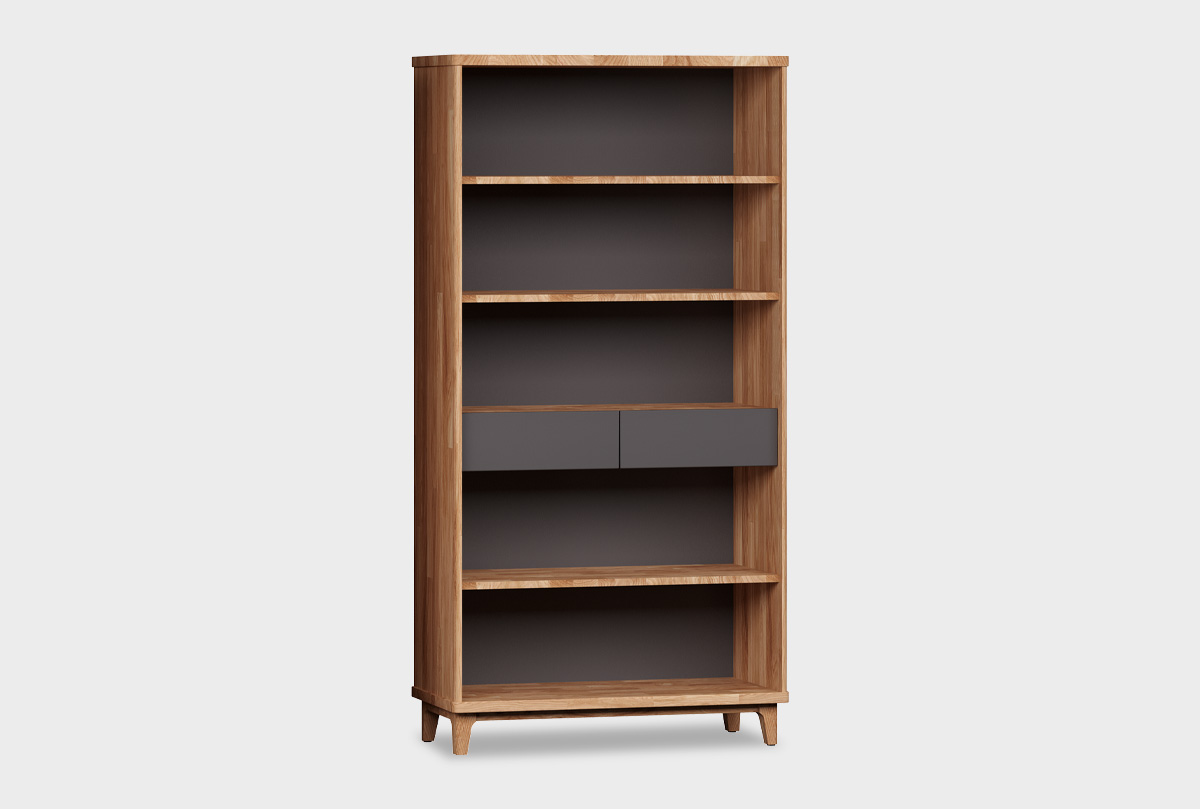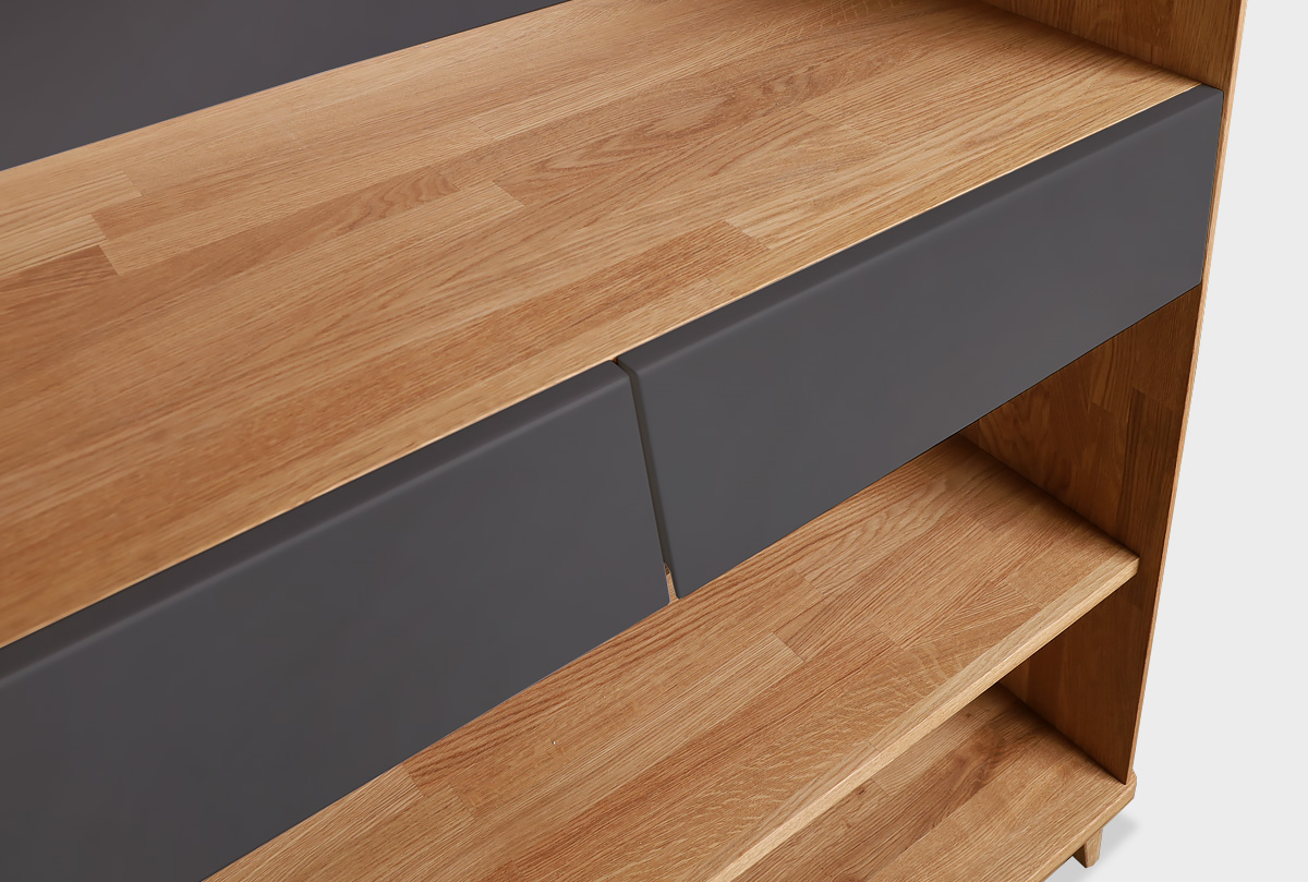 ✅ Стеллаж оснащен двумя выдвижными ящиками.