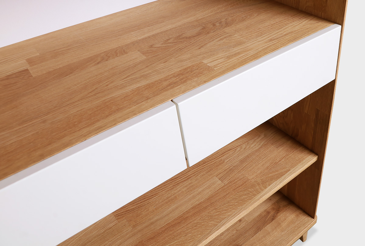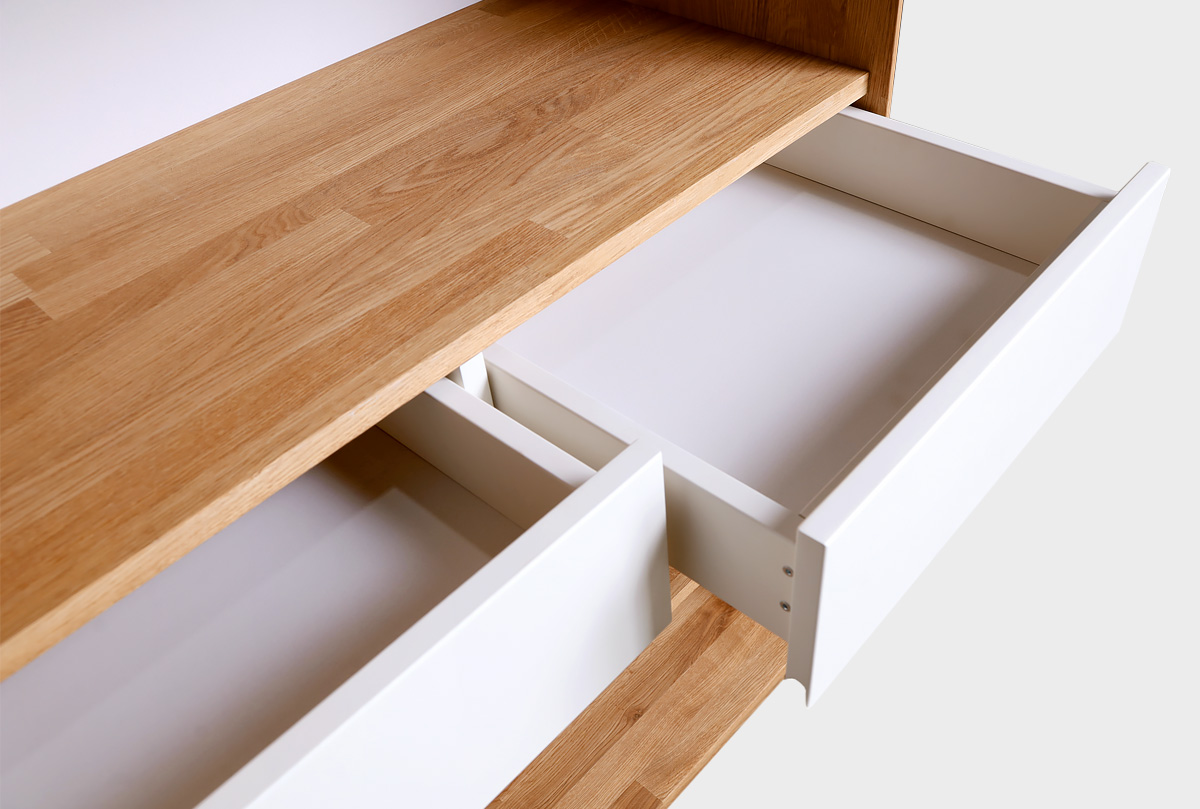 ✅ Стеллаж оснащен двумя выдвижными ящиками.