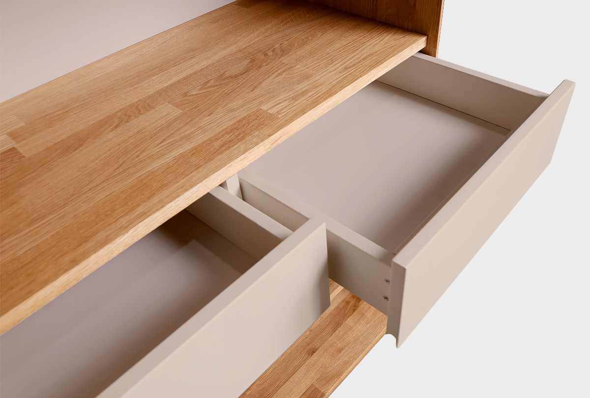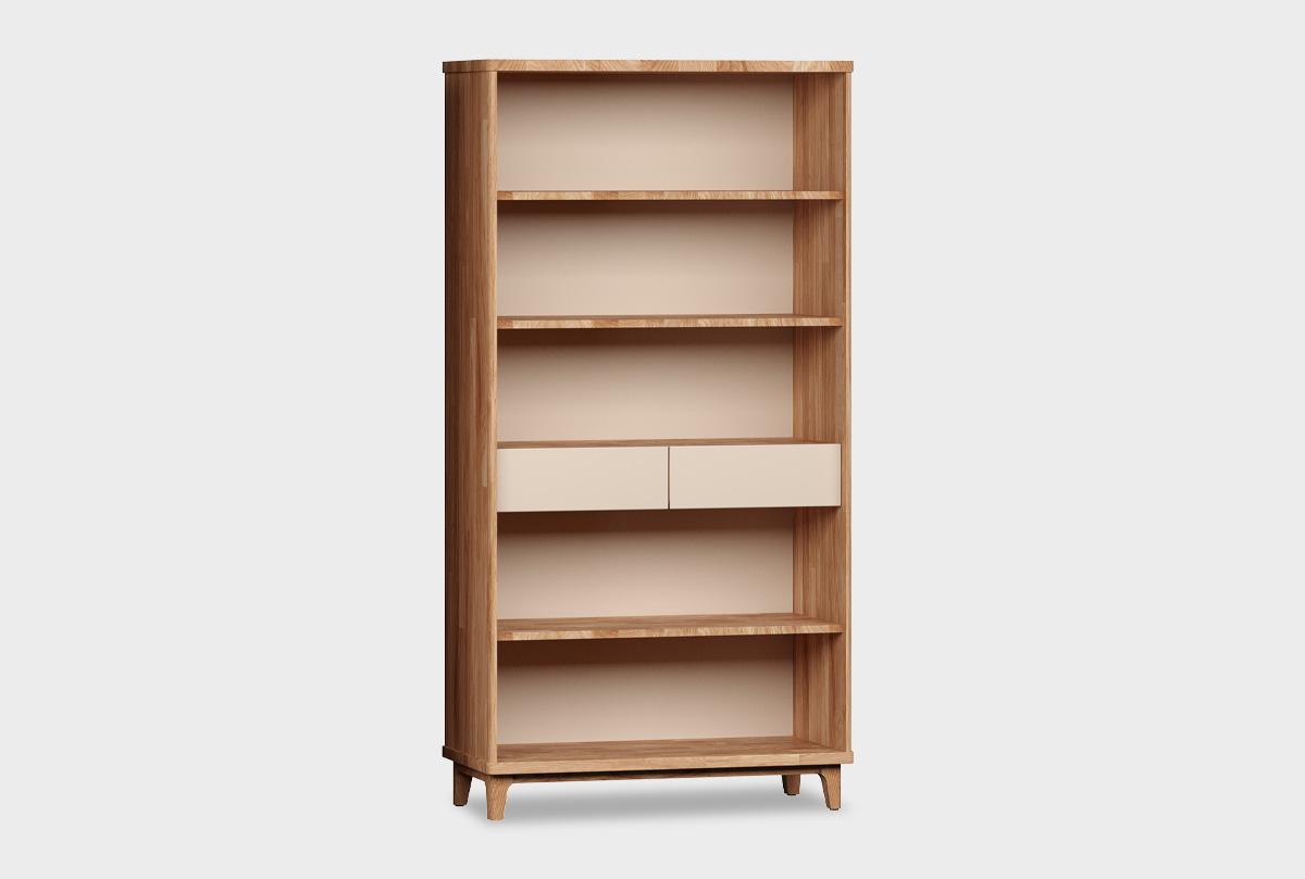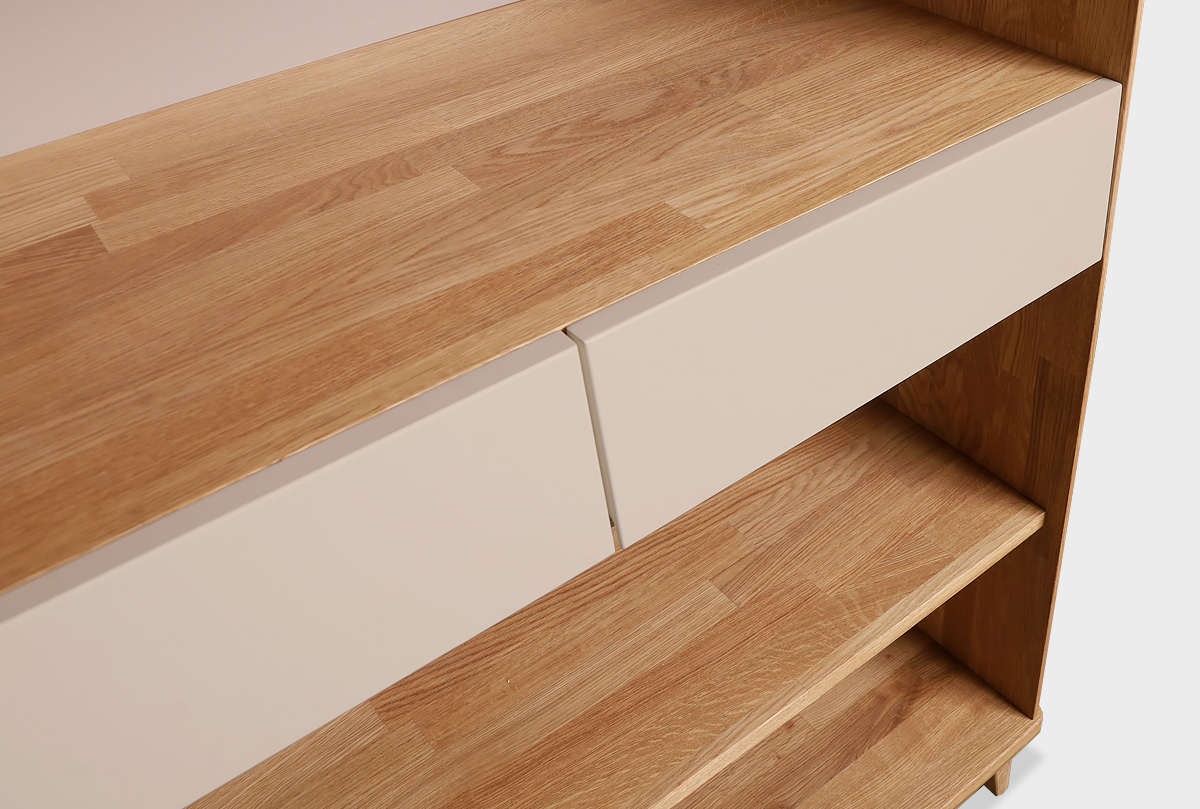 ✅ Стеллаж оснащен двумя выдвижными ящиками.