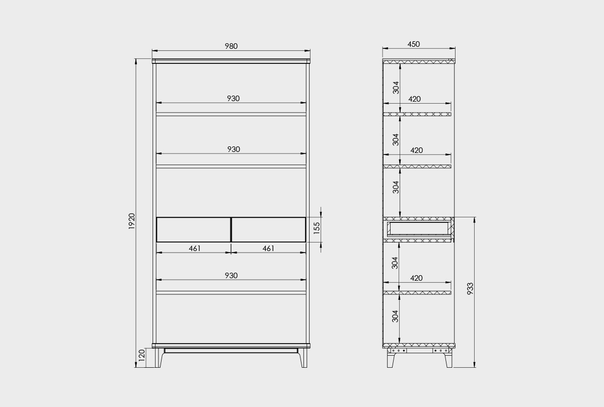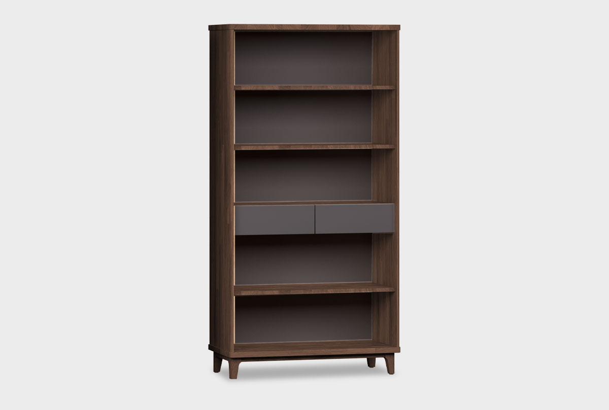 ✅ Стеллаж оснащен двумя выдвижными ящиками.