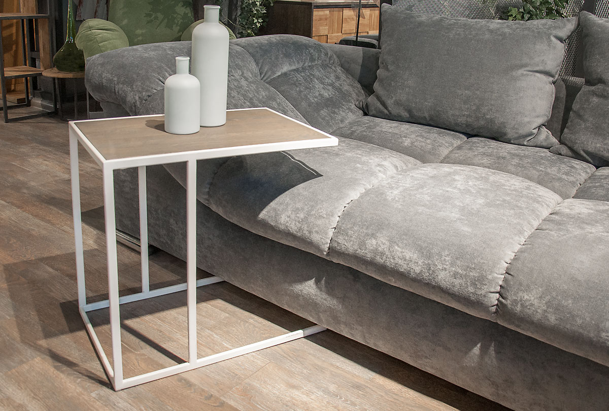 Стол кофейный "Арт" приставной, серый дуб + белый металл, (.Г000049924)