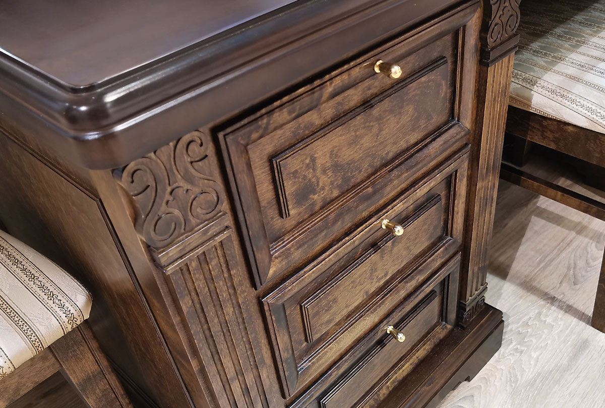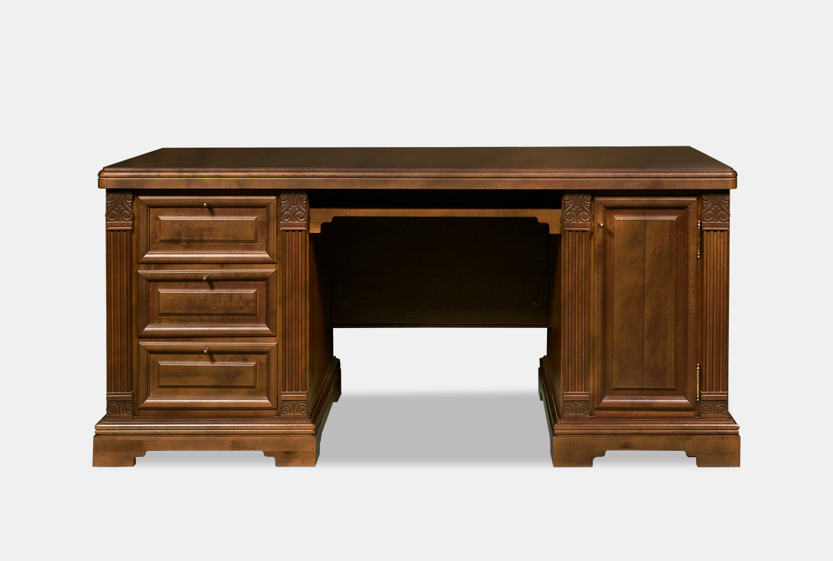 В классическую коллекцию "Престиж" входит удобный и комфортный компьютерный стол. Непревзойденное качество древесины (берёзы) и утонченное крашение "мокко" придают этому предмету интерьера классическую строгость и современную практичность. Грамотная работа с цветами и фактурами позволяет столу прекрасно сочетаться с разностилистической мебелью. Широкий арсенал ящичков и отделений обеспечит хранение всех документов в безупречном порядке.