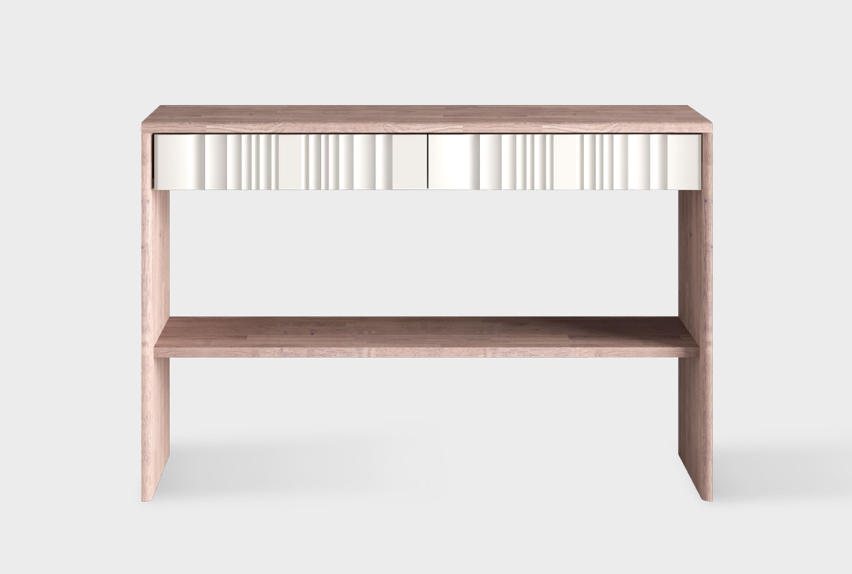 Стол-консоль «Меридиан» — изящный акцент, который способен объединить пространство или мягко выделиться на фоне интерьера. Прямолинейная форма корпуса контрастирует с художественным рельефом фронтальной панели.
